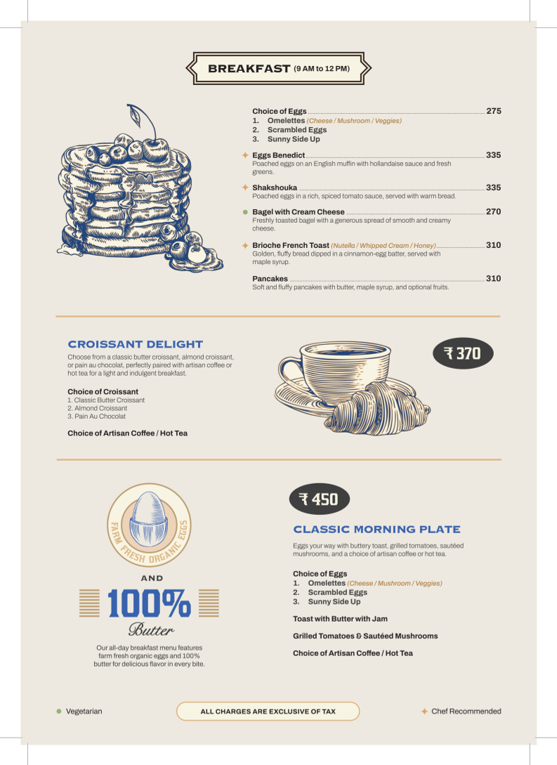 - Crafted Brews: Sip on expertly prepared coffees like the Cappuccino or Café Mocha, both at ₹210.00.